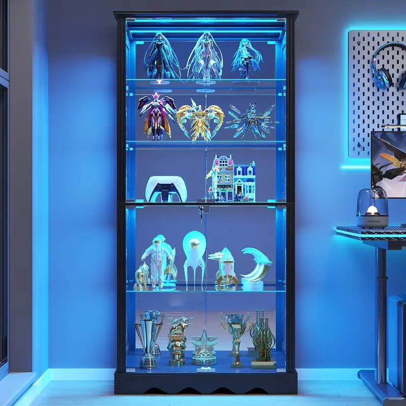 Designed for modern interiors this tall RGB LED display cabinet offers a sleek and functional way to showcase collectibles books and decorative items