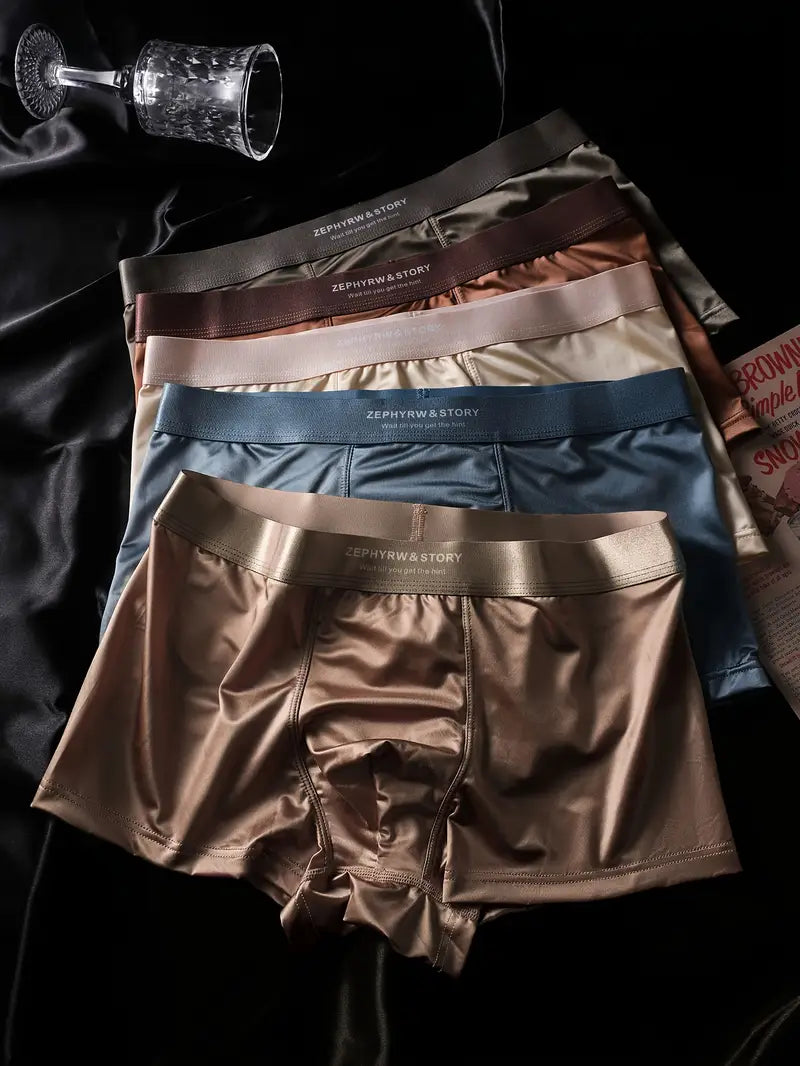 BIWEIER Men’s Ice Silky Briefs – 5-Pack High Elasticity Boxer Shorts, Luxury Soft Breathable Underwear for Home & Vacation