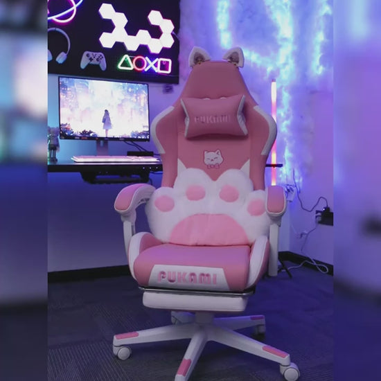 Ergonomic Gaming Chair with Cat Ear Headrest – Kawaii Style, Reclining Lumbar Support, Foam Cushion