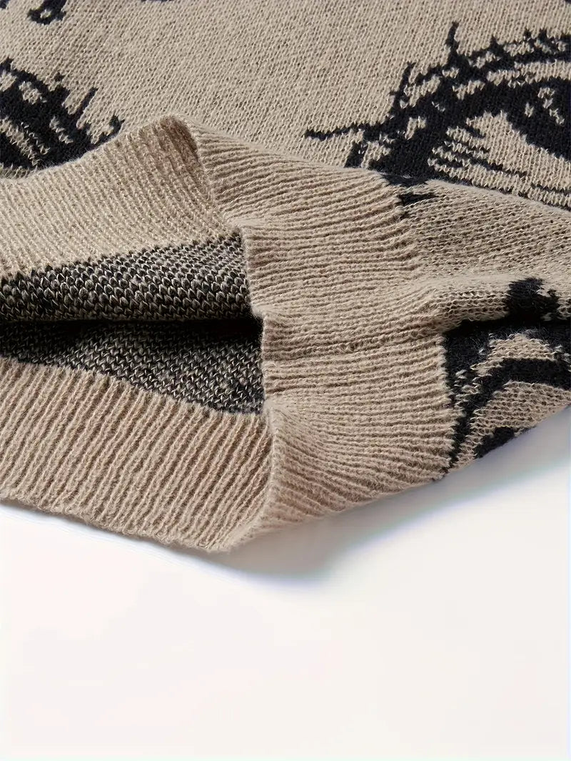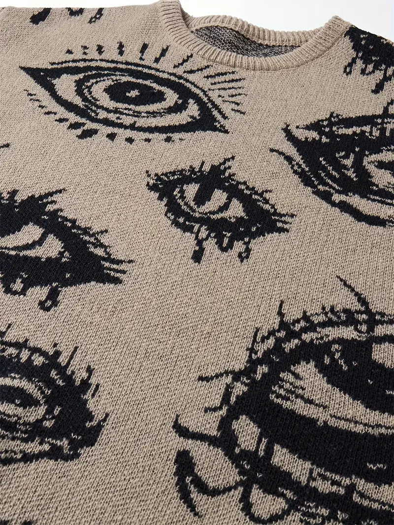 Eye Graphic Sweater – Unisex Streetwear Pullover, Black & White Knit, Fall Winter Fashion Coffe