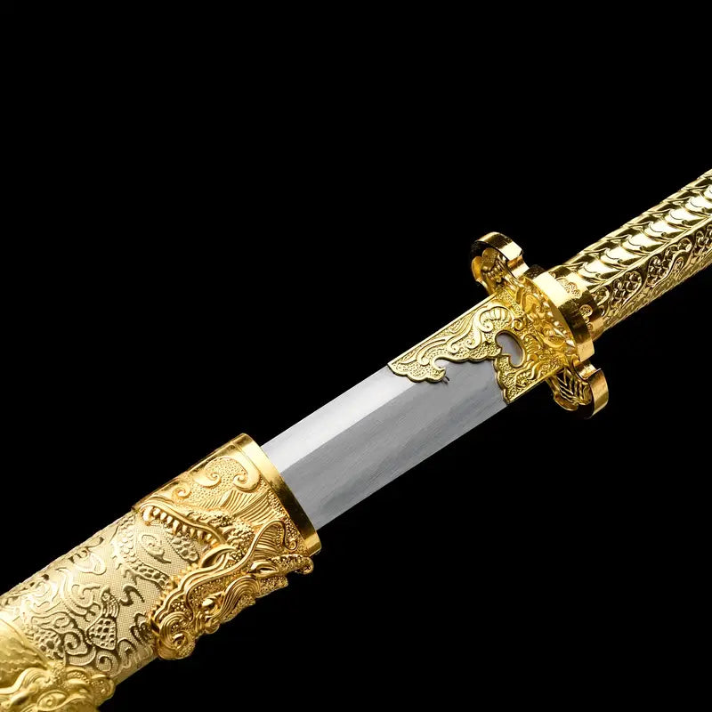 Handmade Golden Dragon Embroidery Sword – T10 Steel Blade, Cowhide Sheath, Decorative Collectible