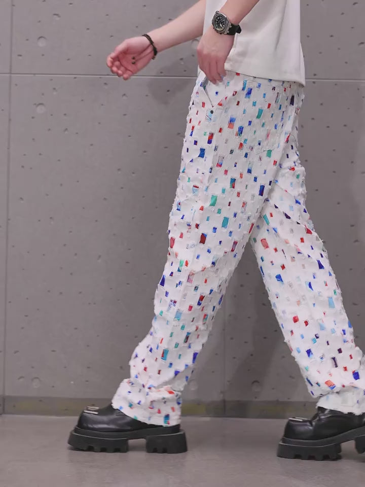 These men’s baggy white jeans feature a straight-leg silhouette with floral lattice print, blending Y2K skateboard fashion with casual streetwear. Made from a durable denim blend (85% cotton, 15% polyester), they offer breathable comfort and freedom of movement for spring outfits, dance, or creative layering. The mid-rise waist and loose fit ensure relaxed wear, while the bold print adds a standout retro vibe. Ideal for hip-hop fans, skaters, and lovers of American vintage style. True to size and machine washable. Keywords naturally included: men’s baggy jeans, white denim pants, Y2K skateboard fashion, floral lattice print, breathable cotton blend, loose fit streetwear, spring casual wear, hip-hop style trousers, straight-leg jeans, retro men’s fashion.
