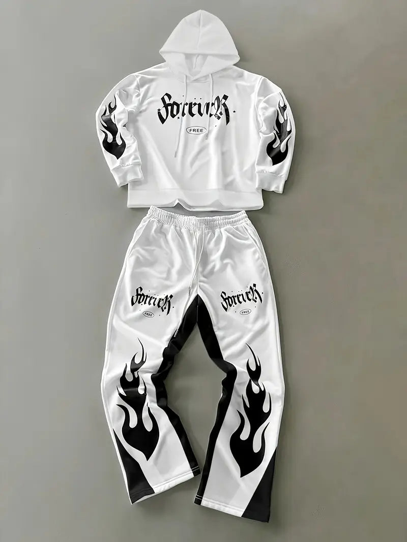 Men’s Streetwear Hoodie Set – Geometric Print Sweatshirt & Joggers – Urban Casual Outfit