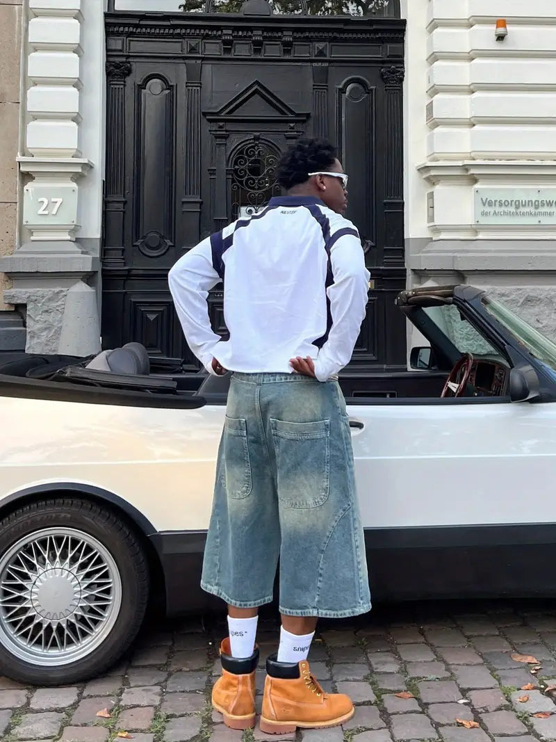Men’s Washed Denim Shorts – Solid Color Knee-Length Loose Fit with Retro Style for Summer Streetwear