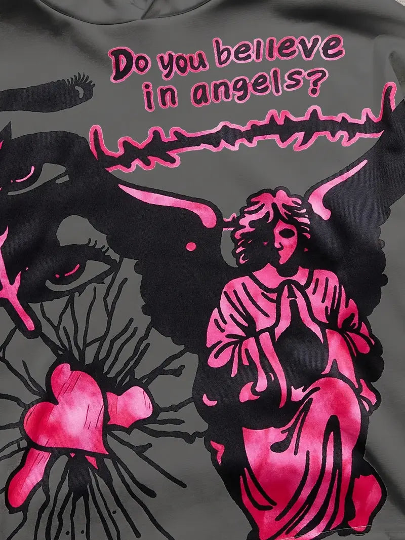 The hoodie showcases a bold angel heart graphic across the chest, while the sweatpants feature coordinated prints and a relaxed fit with elastic waistband. Ideal for fall and winter, this two-piece set blends spiritual symbolism with trend-forward fashion, making it a go-to for casual outings, creative layering, or gifting.