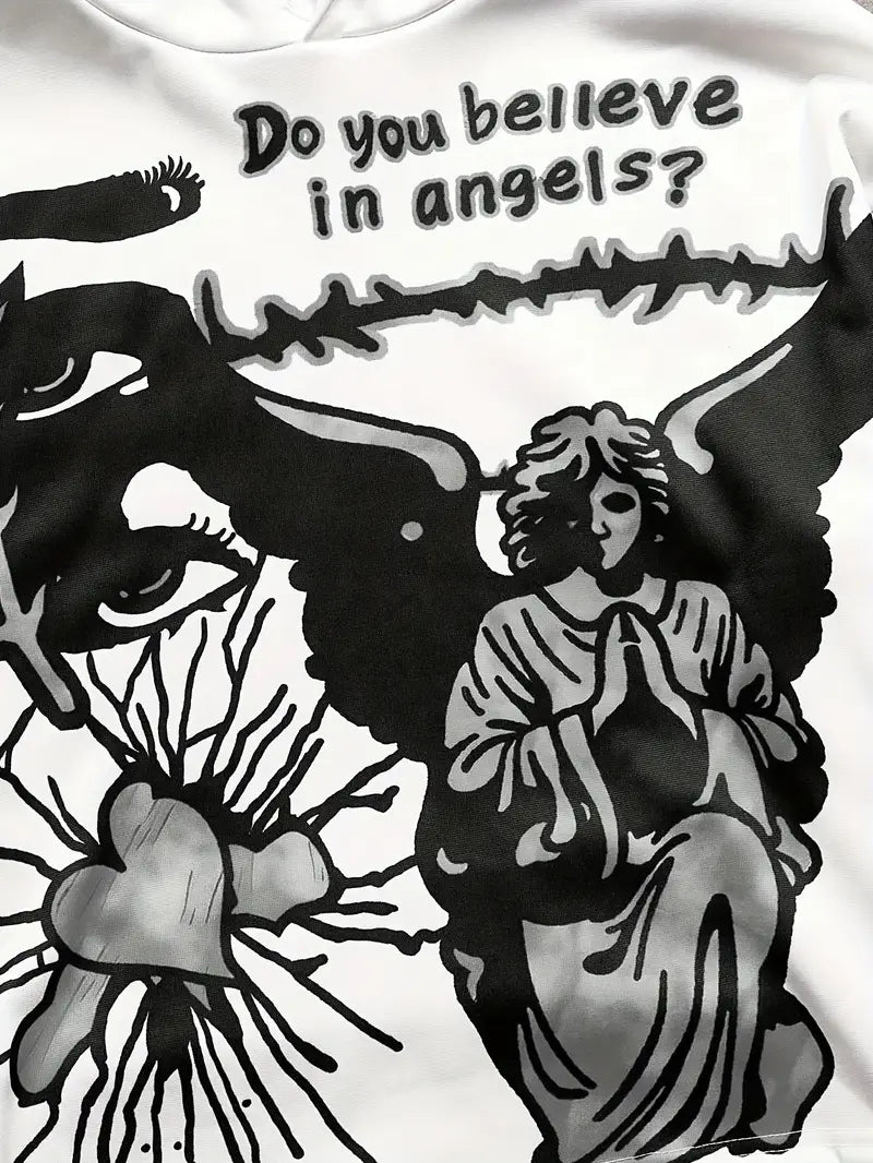 The hoodie showcases a bold angel heart graphic across the chest, while the sweatpants feature coordinated prints and a relaxed fit with elastic waistband. Ideal for fall and winter, this two-piece set blends spiritual symbolism with trend-forward fashion, making it a go-to for casual outings, creative layering, or gifting.