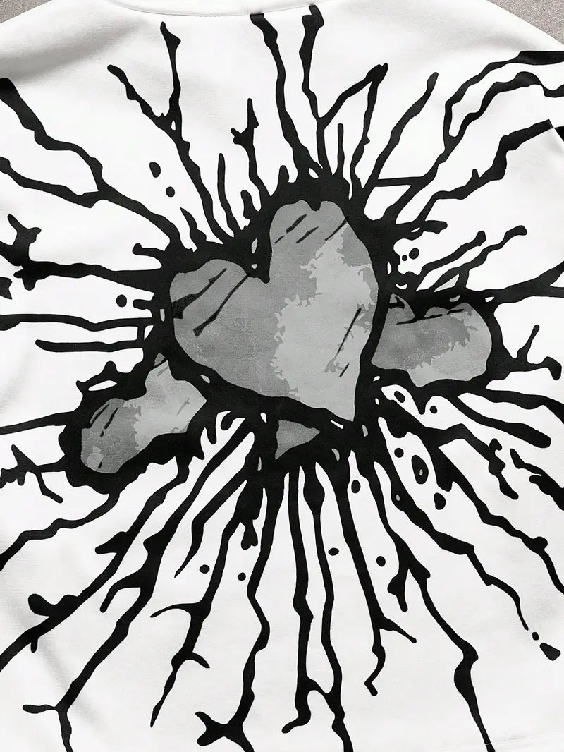 Men's 3D Angel Heart Hoodie Set Polyester Casual Streetwear Two-Piece Outfit with Graphic Sweatshirt & Pants White/Black