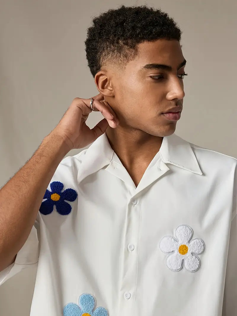 Elevate your everyday style with this men's black casual shirt, crafted from lightweight non-stretch woven fabric for breathable comfort and structured fit. The classic collar and button-up front offer timeless appeal, while the solid color background and asymmetrical floral design add subtle elegance for both office and casual settings.