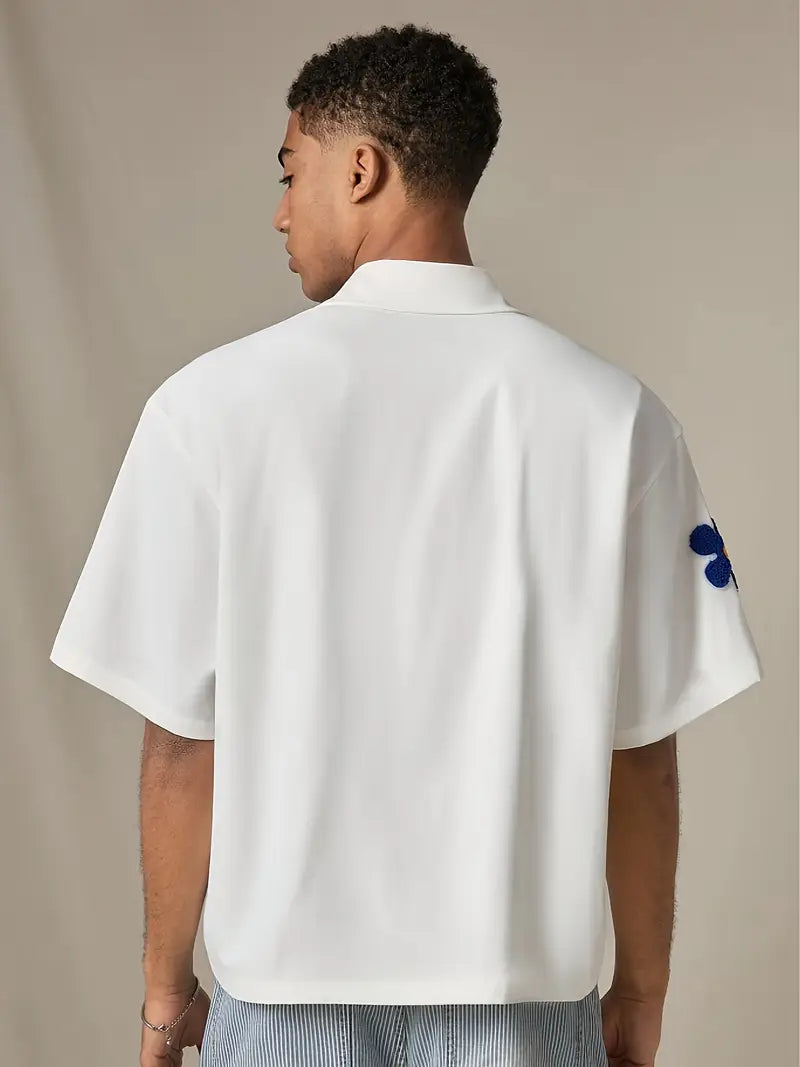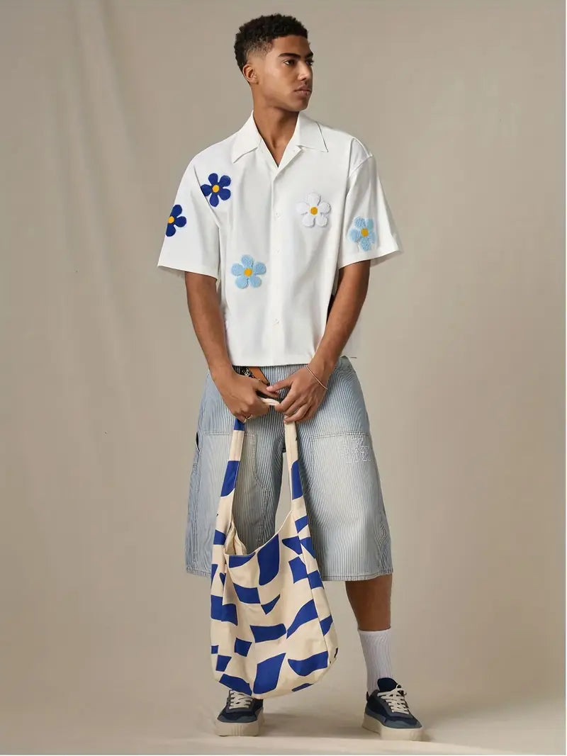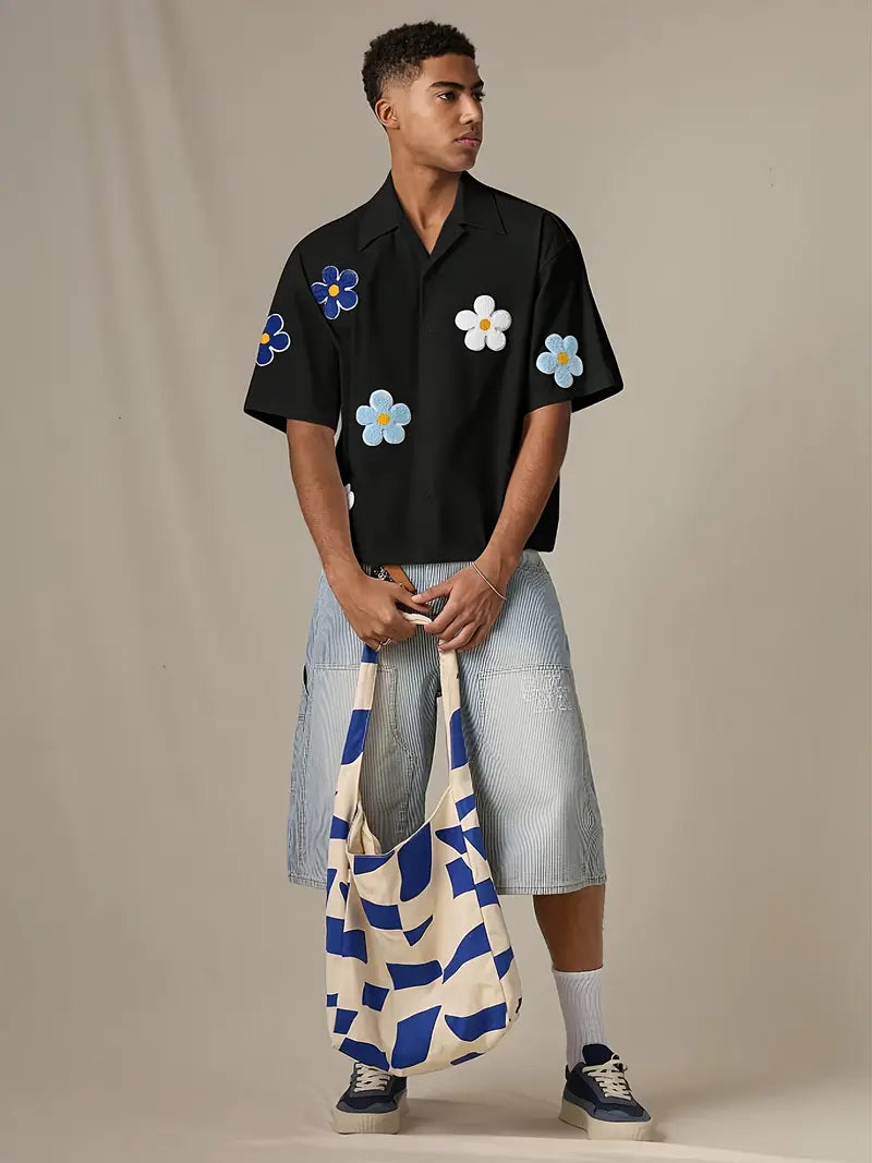 Elevate your everyday style with this men's black casual shirt, crafted from lightweight non-stretch woven fabric for breathable comfort and structured fit. The classic collar and button-up front offer timeless appeal, while the solid color background and asymmetrical floral design add subtle elegance for both office and casual settings.