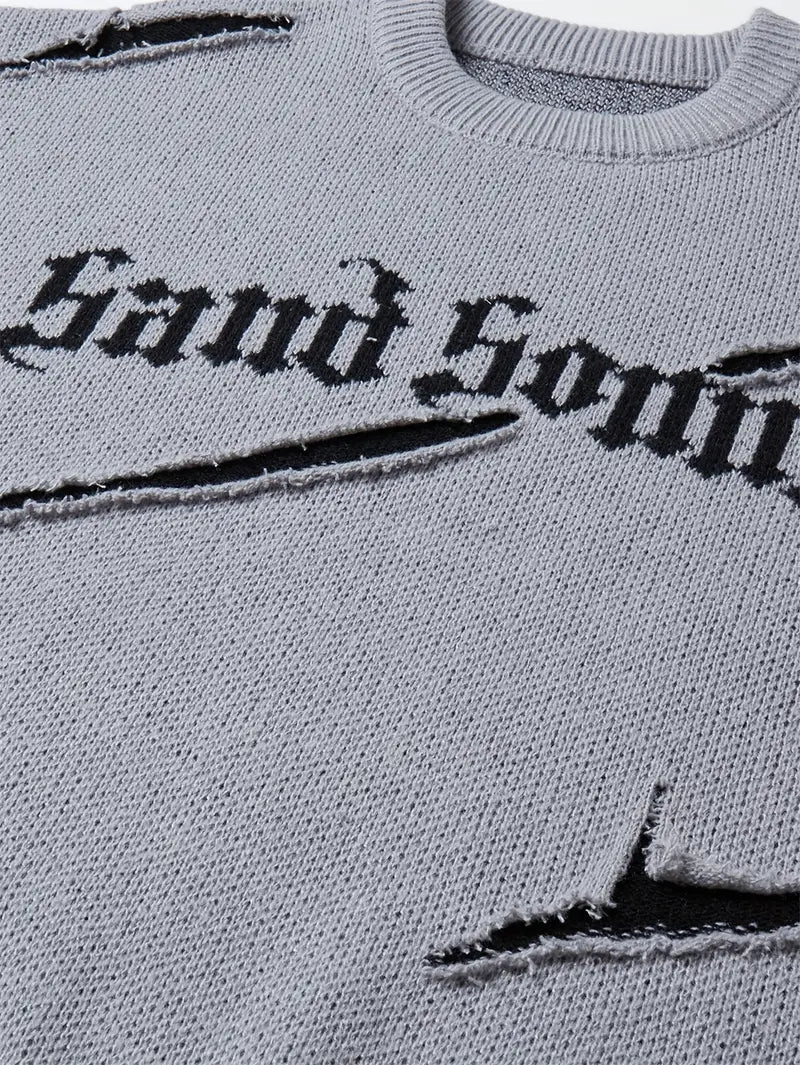Men's Distressed Knit Sweater – Casual Pullover, Ripped Detail, Loose Fit Streetwear for Fall/Winter Grey