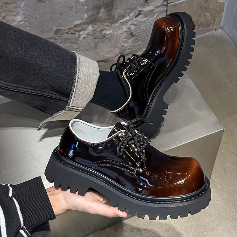Men's Glossy Low-Top Sneakers – Brown, Round Toe, Cushioned Insole, Non-Slip Sole, Casual & Formal