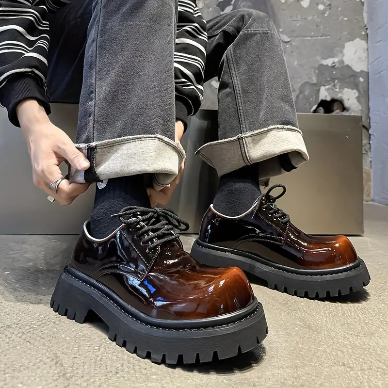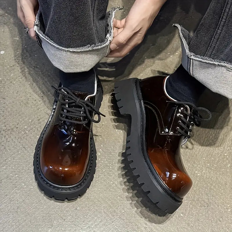 Refine your look with these men's glossy brown-like low-top sneakers featuring a round toe and cushioned insole with arch support. Designed with a PU upper, synthetic lining, and durable rubber sole, these shoes offer comfort and traction for business, streetwear, or casual attire. The lace-up closure ensures a secure fit, while the versatile design suits hiking, office wear, and semi-formal events. Available in brown and black, these non-slip sneakers are ideal for teens and adults seeking stylish, high-quality footwear. Keywords: men's glossy sneakers, brown low-top shoes, round toe dress shoes, cushioned insole footwear, non-slip rubber sole, PU upper sneakers, casual formal shoes, lace-up men's shoes, versatile streetwear sneakers, durable men's footwear.