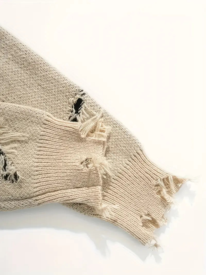 Embrace edgy fashion with this men's oversized gothic sweater featuring bold “UNLIMITED” lettering and bat wing embellishments. Designed with a frayed hem, distressed knit texture, and loose fit, this pullover is perfect for fall and winter streetwear. The beige color and embroidered alphabet pattern add a unique touch to casual and gothic outfits. Ideal for teens and adults seeking expressive knitwear with a rebellious vibe. Comfortable, warm, and stylish—this sweater is a must-have for alternative fashion lovers. Keywords: men's gothic sweater, oversized pullover, distressed knitwear, UNLIMITED lettering, bat wing embellishment, frayed hem sweater, fall winter fashion, streetwear for men, casual gothic clothing, stylish knit sweater.