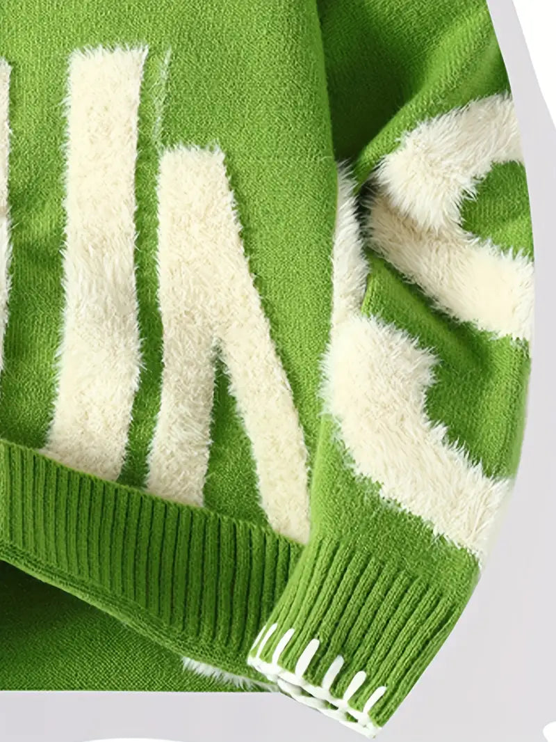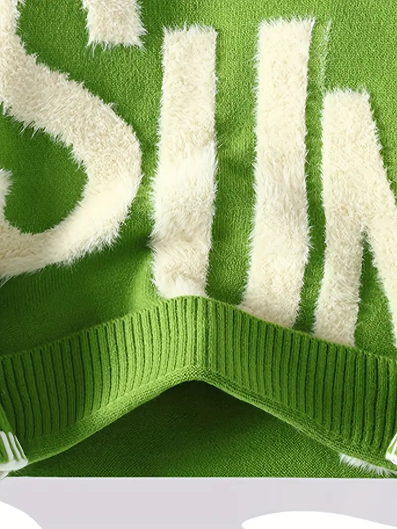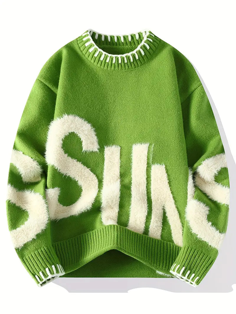 Men's Slim-Fit Winter Sweater – Fade Letter Pattern, Breathable Knit Pullover for Casual & Formal Wear