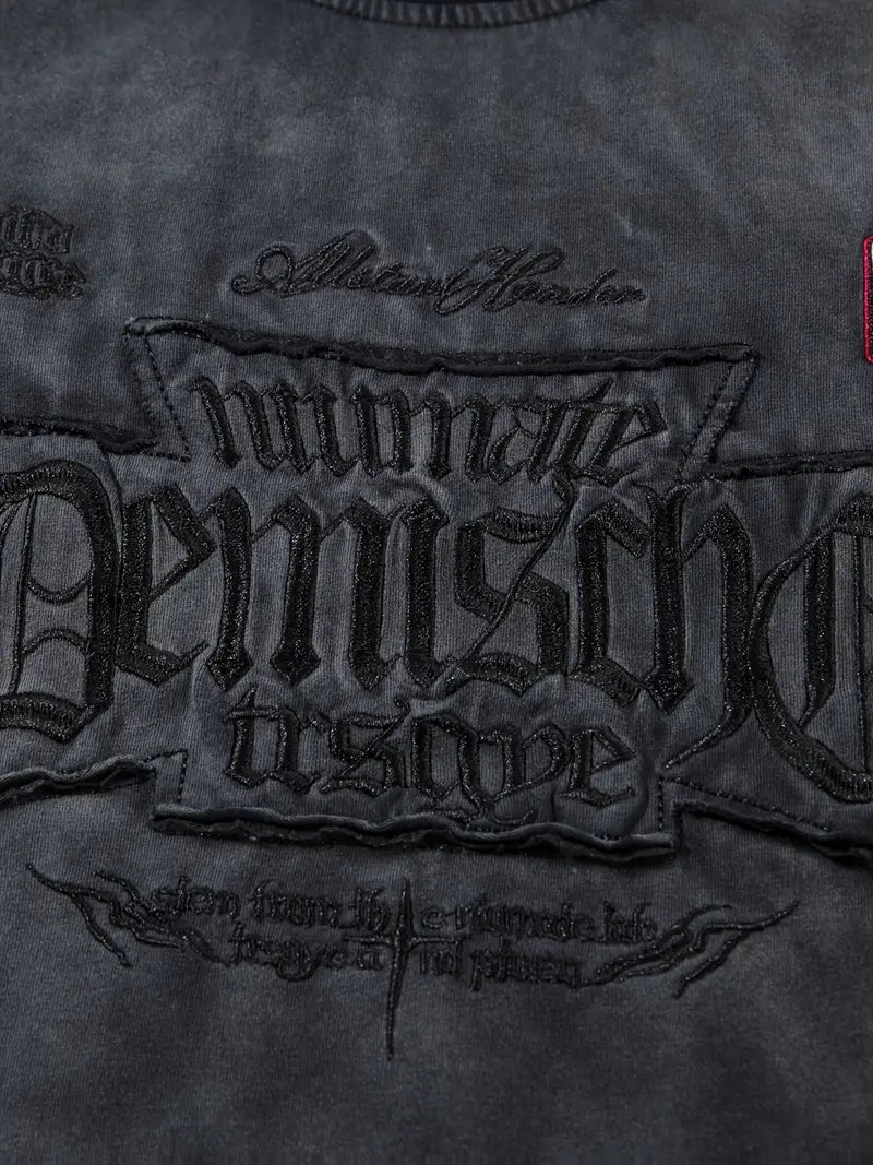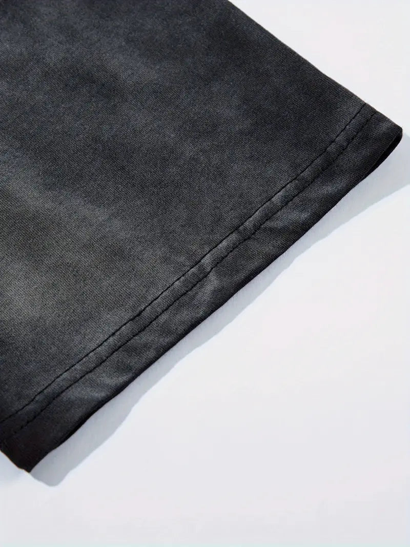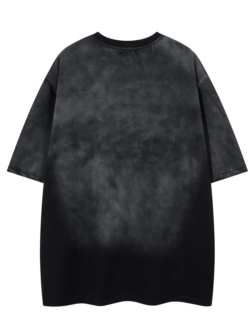 Step into effortless style with this men's vintage washed tie-dye T-shirt, featuring embroidered letters for a bold streetwear statement. The loose fit and crew neck design offer breathable comfort, while the faded black wash and subtle logo patch add retro character to your summer wardrobe.
