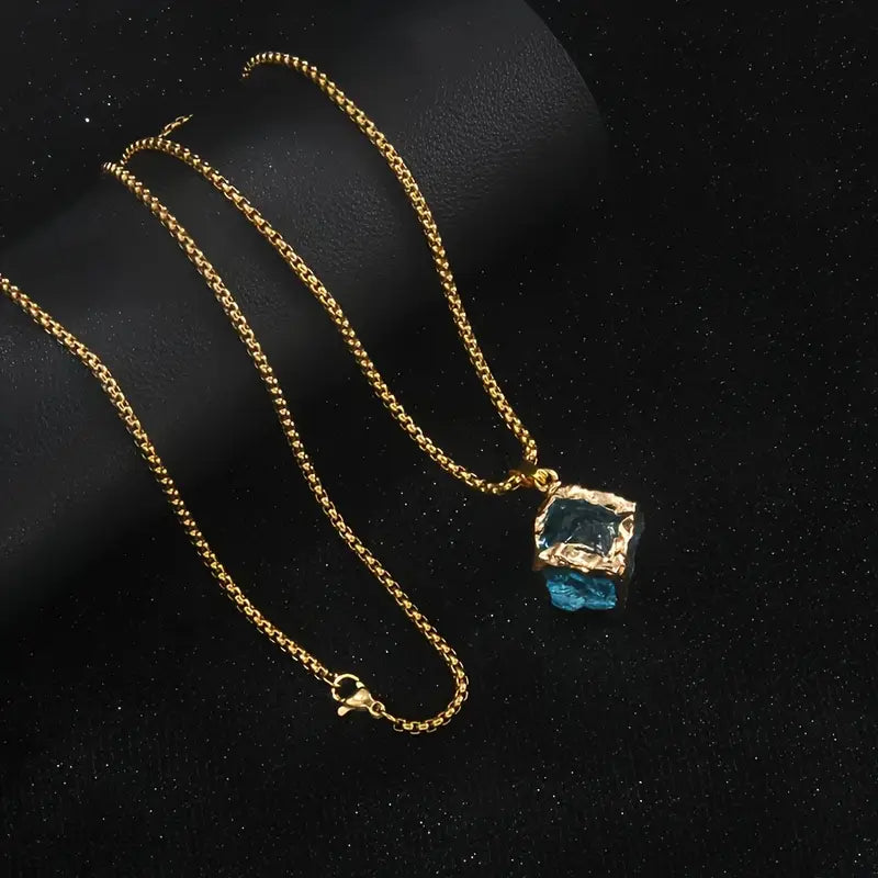Plated Stainless Steel Necklace – Crystal Cube Pendant, Polychrome Finish, Fashion Jewelry Gift for Women & Teens