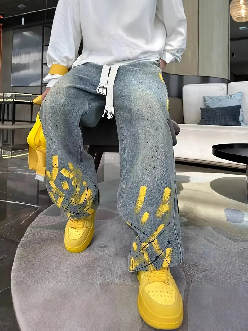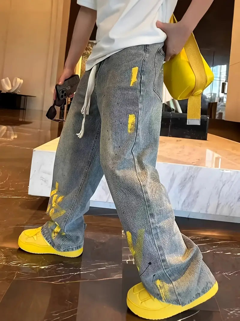 These unisex jacquard streetwear jeans feature a light blue tone with flared straight-leg silhouette and subtle woven texture, blending high-street fashion with casual comfort. Made from a breathable cotton blend (75% cotton, 20% modal, 5% elastane), they offer soft stretch and all-season wear. The elastic waistband ensures easy fit, while the machine-washable fabric suits daily outfits, creative layering, or semi-formal styling. Ideal for fans of minimalist fashion, Y2K aesthetics, and cool-tone denim. True to size and suitable for both men and women. Keywords naturally included: unisex jacquard jeans, light blue flared denim, elastic waistband pants, breathable cotton blend, streetwear trousers, regular fit fashion, all-season denim, Y2K style pants, woven texture jeans, casual high-street clothing.