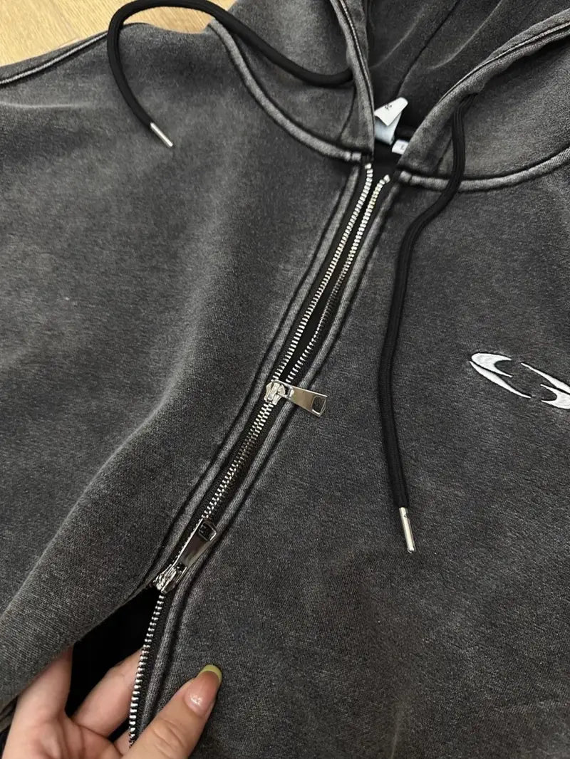 Designed for transitional seasons this oversized hooded jacket features a retro silhouette with full-zip closure and soft breathable fabric